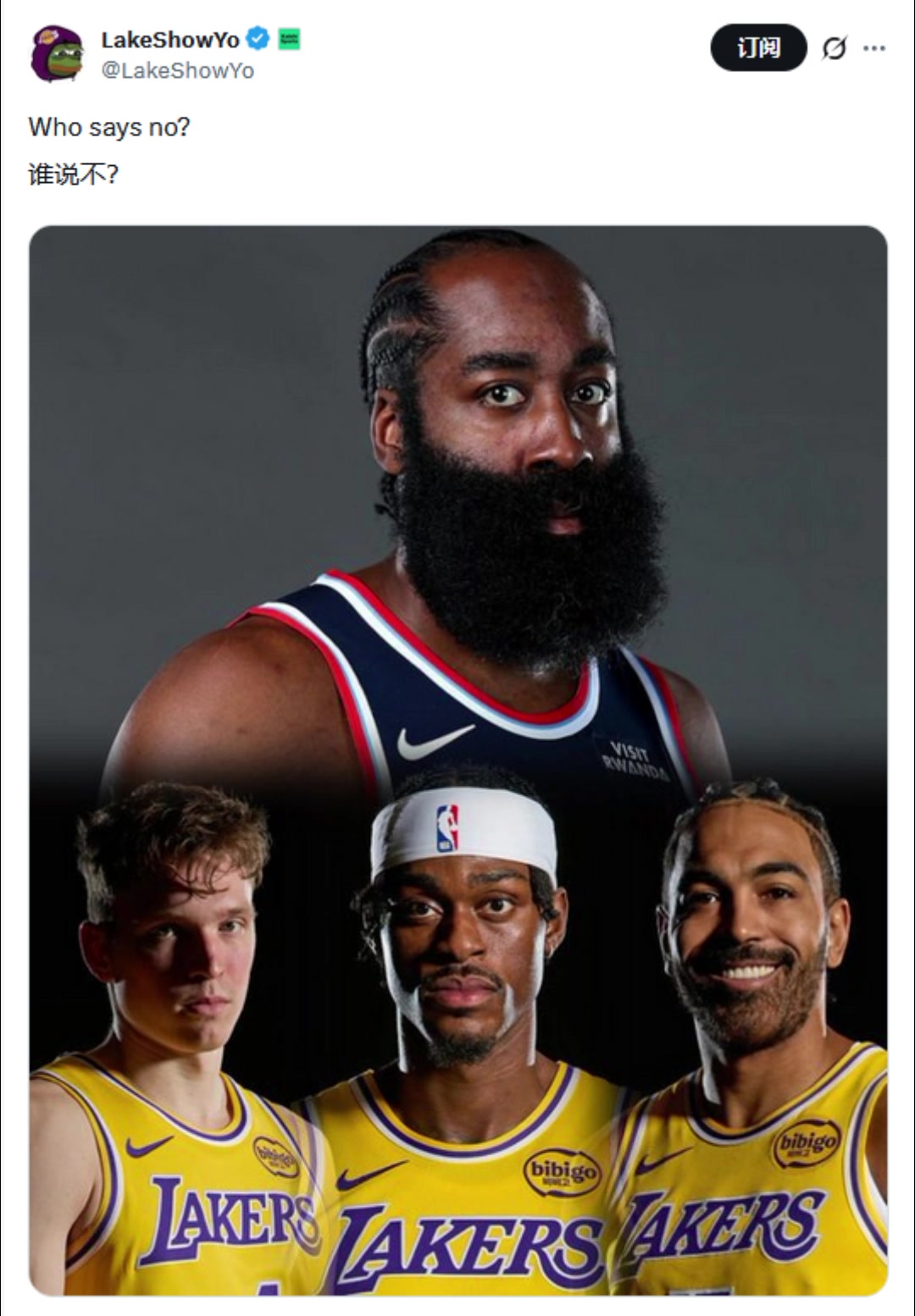 • 真敢想湖人自媒体YY可用克内克特范德彪文森特去换哈登